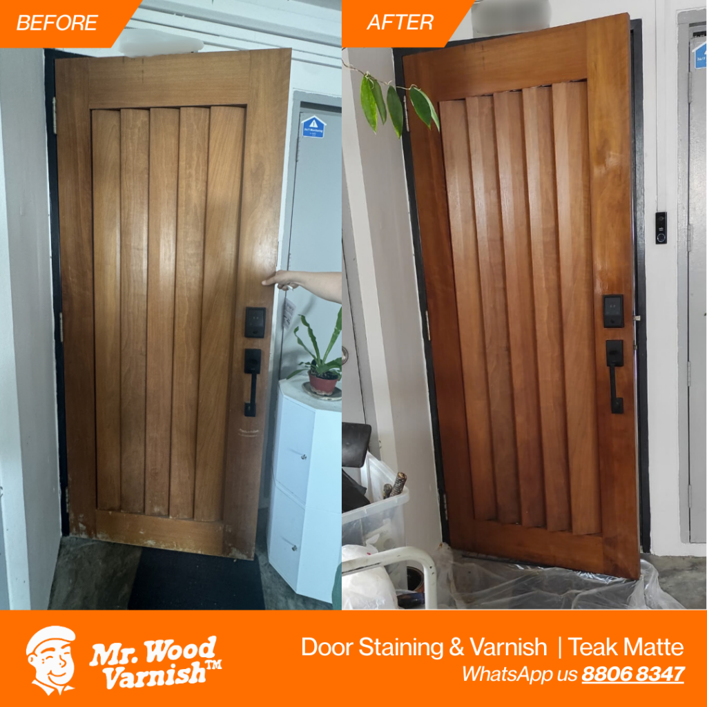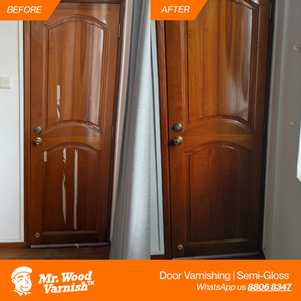📞 WhatsApp 88068347 to book a slot for door varnishing now!